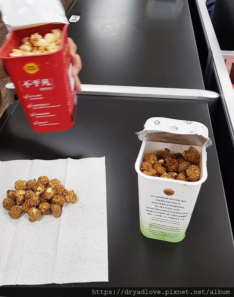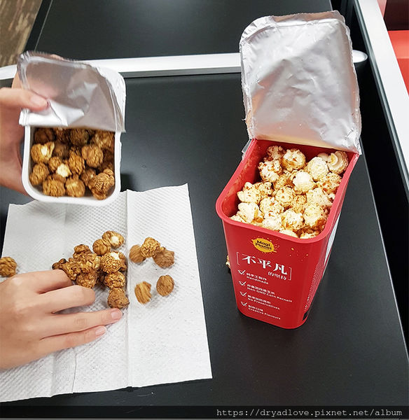這一款爆米花,也是人氣爆棚,可以看到大家又拿紙巾來分贓我的點心了