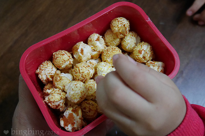 鹹甜酥脆的爆米花口感,越吃越好吃,就連我們家大老闆也說快車肉乾口味的爆米花吃久了還真特別