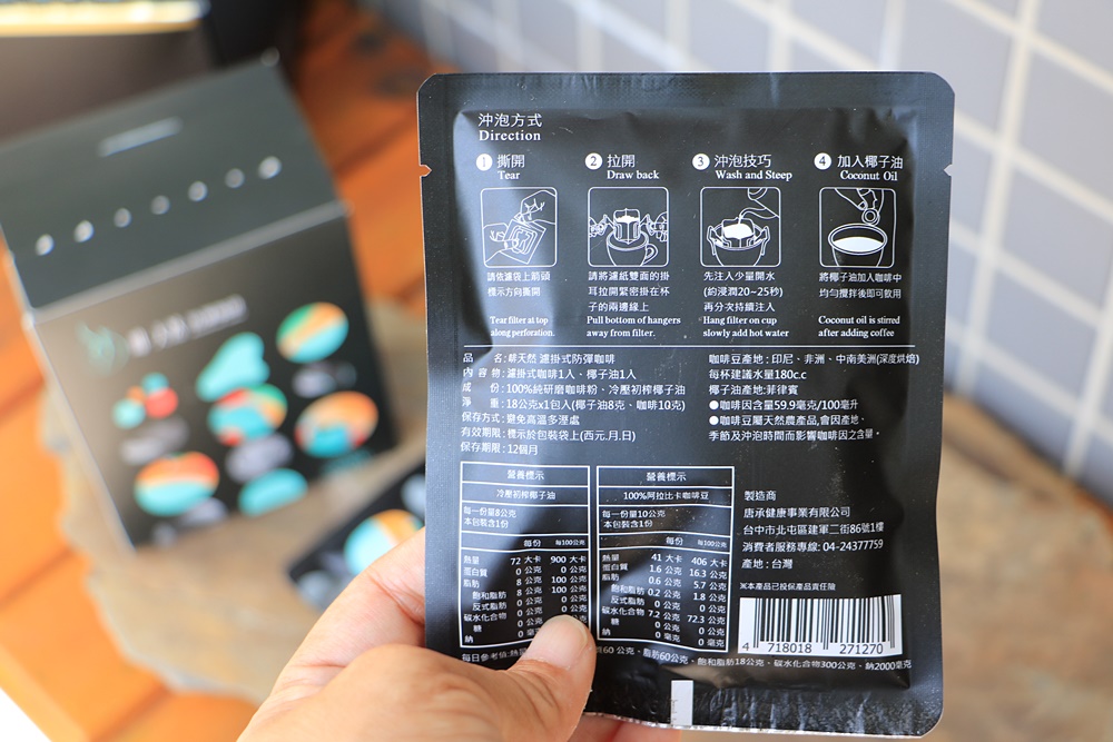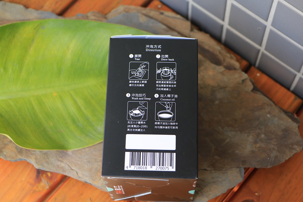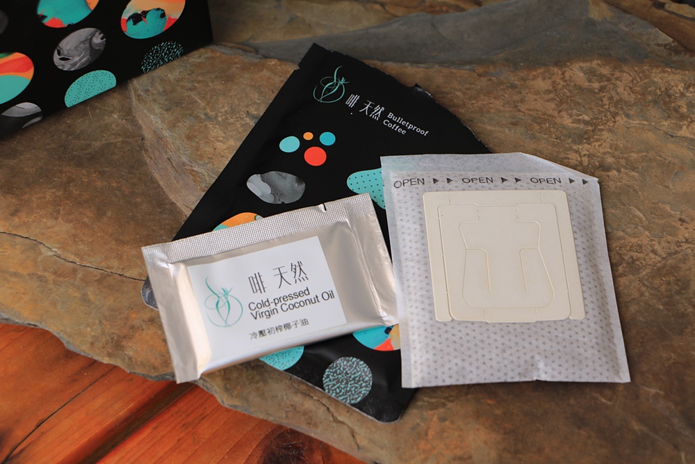 咖啡是選用100%阿拉比卡咖啡豆(10g)研磨而成,旁邊還附上一包冷壓初榨椰子油( 8g)。 天然椰子油和一般長鏈脂肪酸有所不同,不含反式脂肪,是生酮飲食油品挑選首選。 來自菲律賓有機冷壓初榨椰子油,以低溫榨取種子第一次拿到的油,營養最為豐富。