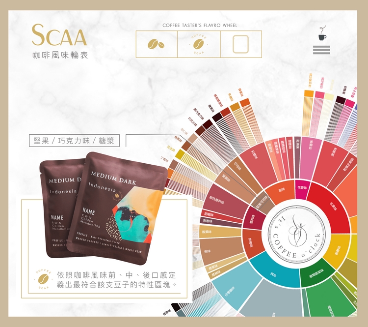 這是依國際咖啡風味色階表定義包裝色彩,