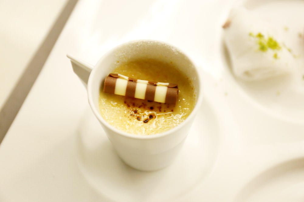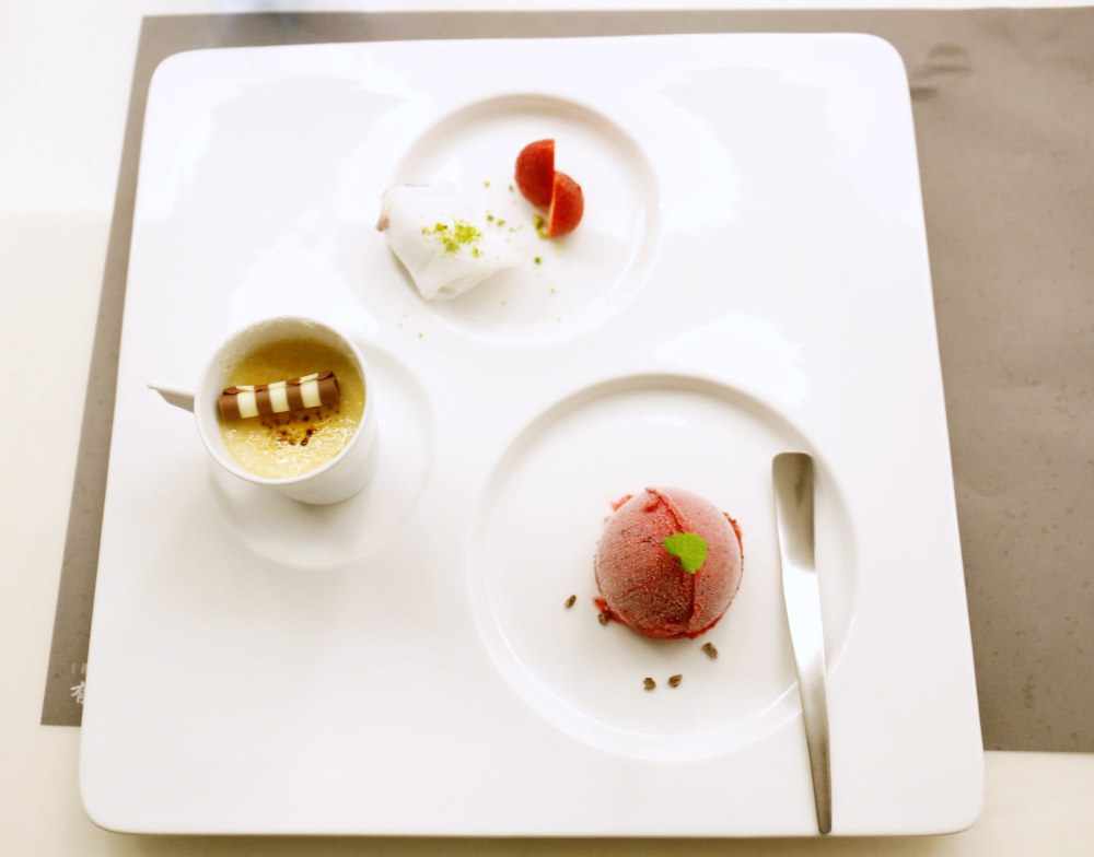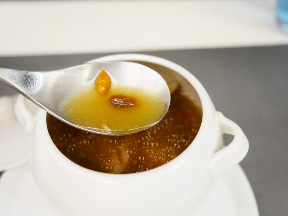 桌上的是碟豆花+萬壽竹的店家自製飲品