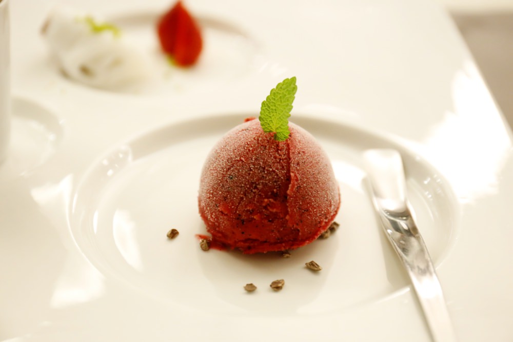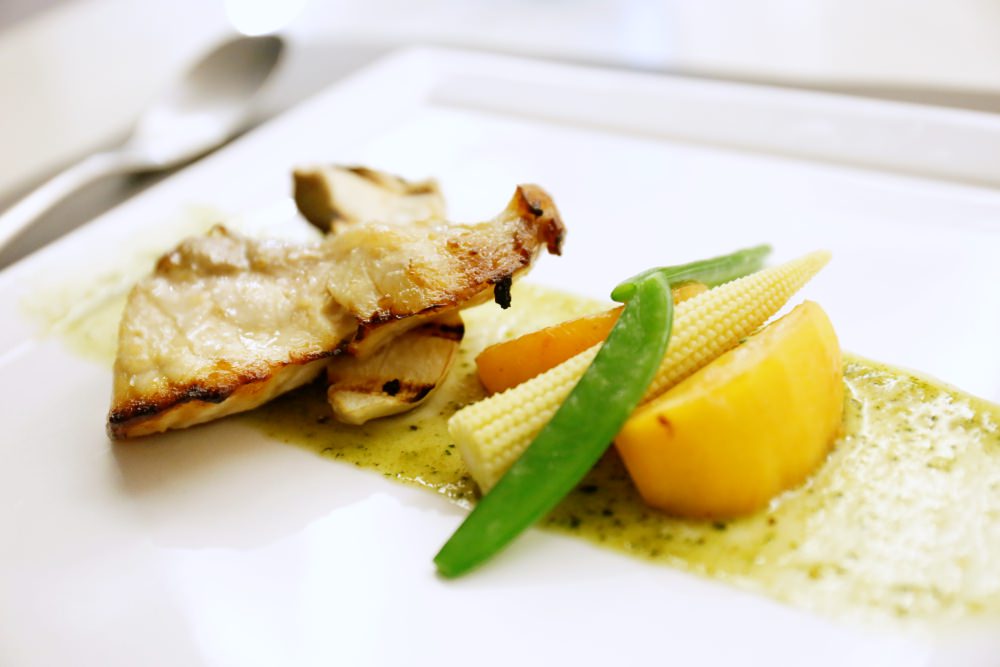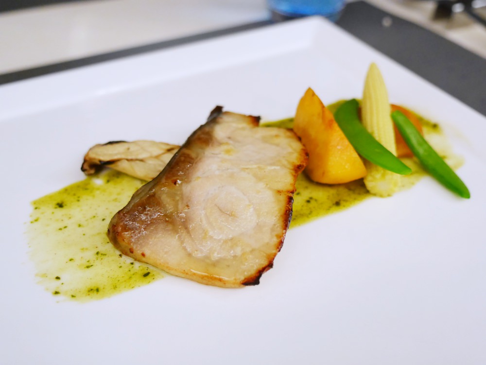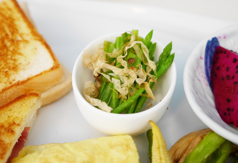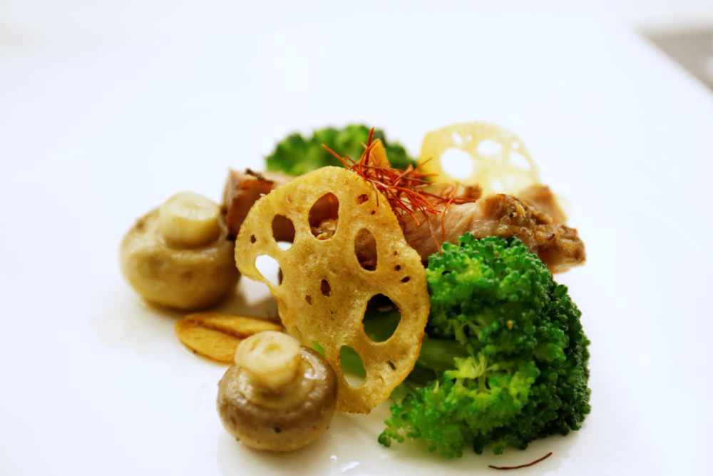脆絲干貝搭梅汁蘿蔔佐明太子醬