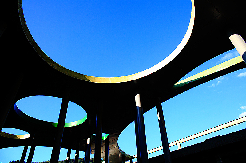 抬頭仰望,上頭一整個圓圈,照應到水池畔呼應,讓萍子想到日月星辰,這樣美麗意境。