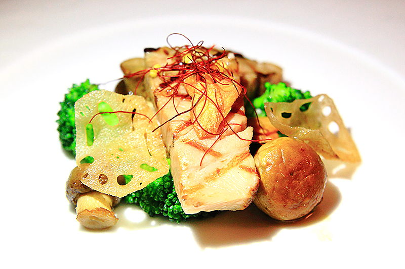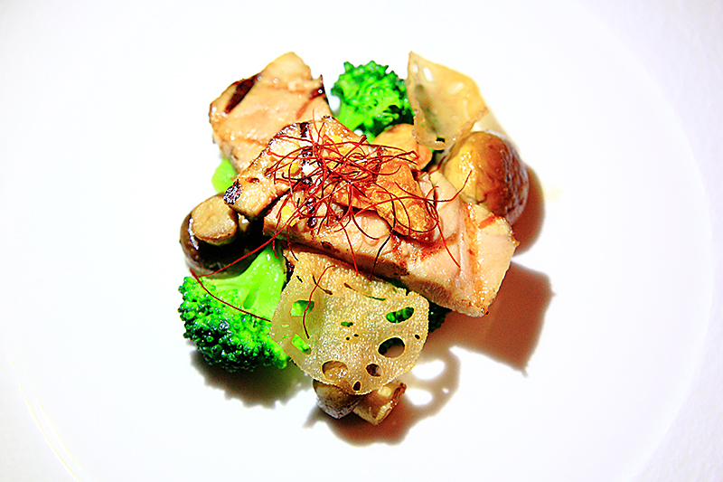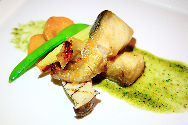 鱘龍魚無刺富膠質是高檔食材,用腐味噌醃製再烘烤,肉質香嫩細緻,沾著底部主廚特調過的醬汁,更逼出鱘魚排的嫩,一點腥味都沒有,好美味。