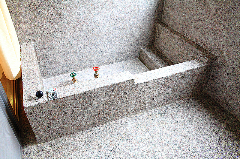 陽光從大面玻璃窗折射進入室內,光影層次變化,只是一個衛浴乾濕分離的泡澡空間,卻因光影變化,成為一幅美麗的畫作。