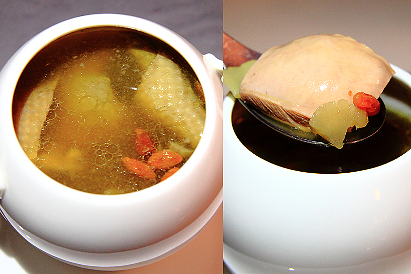 湯品:百合山藥放山雞湯,挑選放山雞熟煮多時,可至骨肉輕易就能分離,雞湯非常濃郁,吸收了枸杞、山藥與雞肉肉質,小火熬煮成的雞肉湯汁,雞肉很彈牙細緻,非常香淳,好好喝。