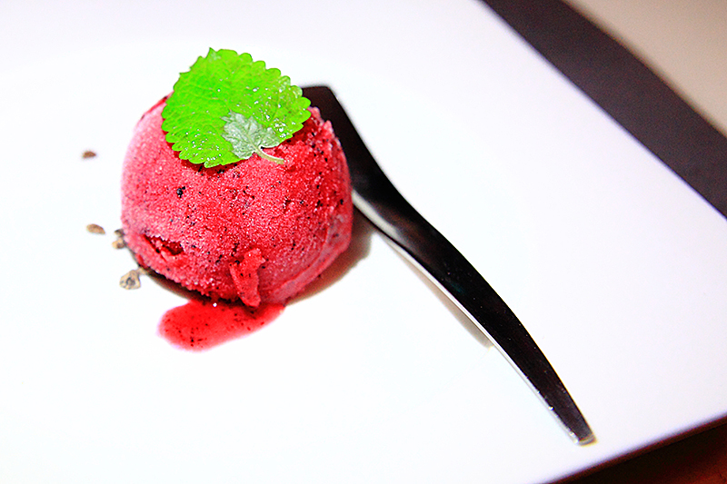 甜點有:火龍果冰淇淋,用台灣在地水果火龍果製作成冰沙,吃起來帶點微酸帶甜,清爽開胃。