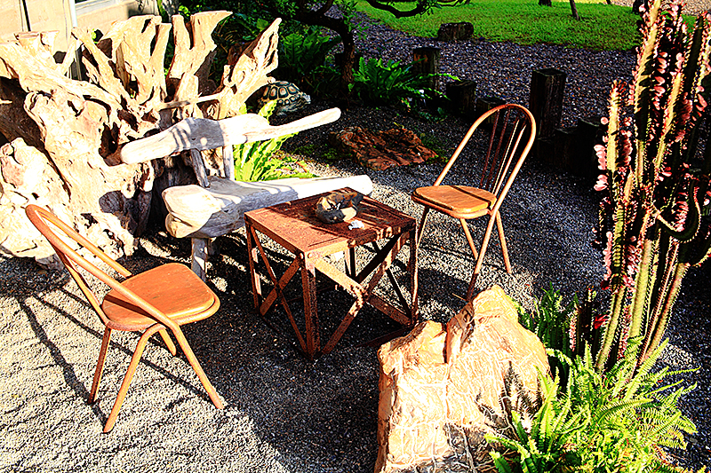 房內提供一個編織曲線桌,兩個座墊,多了種禪意,晚上在此打坐,非常享受。