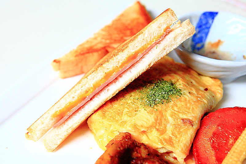 早餐走中西式組合(住宿提供),非常有份量,好澎湃,吃完一份不夠,還可再一份,給的大方,主要包含了煎雞胸肉、歐姆蛋、生菜沙拉、香煎時蔬、烤火腿起司吐司、水果及飲料等,迷迭香雞煎的外酥內軟香,很可口,歐姆蛋帶點半聲半熟濕潤口感,好吃極了。