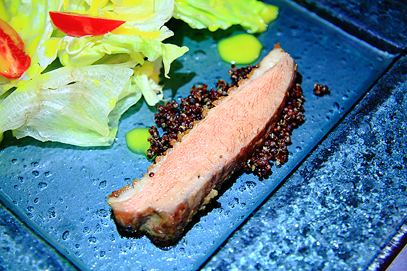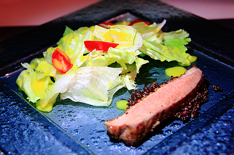 沙拉:鴨胸紅藜沙拉佐百香果油醋醬。