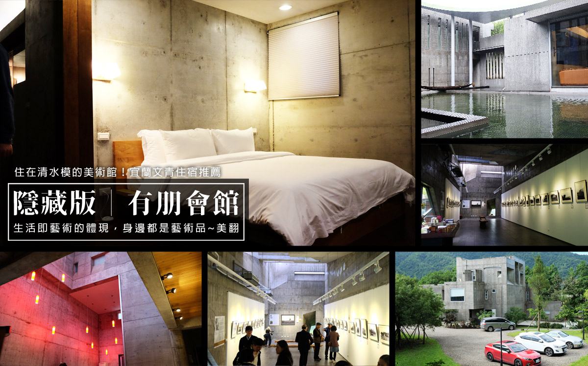 有朋會館,位於大礁溪的山谷間,風格獨特的建築,每一個角落靜觀皆是美,客房內部以清水模為主體,搭配簡約的家具點綴,一泊二食的主廚創意無菜單料理及精緻定食早餐,還有一間美術館,能徜徉於畫作之間,享受美妙的藝術饗宴,偶爾讓自己隱居於山中,享受自然,重新歸零