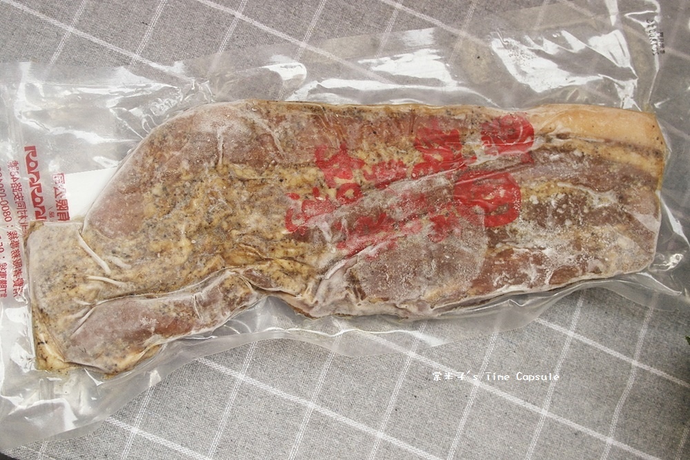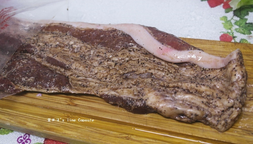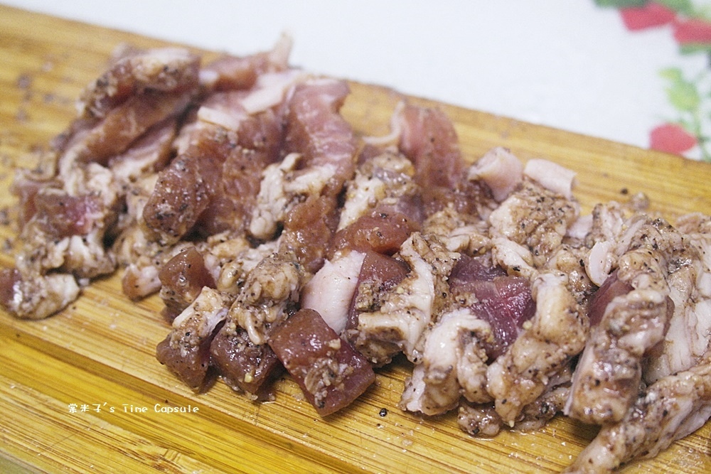 肉眼可以看到鹹豬肉上點點的黑胡椒粒,