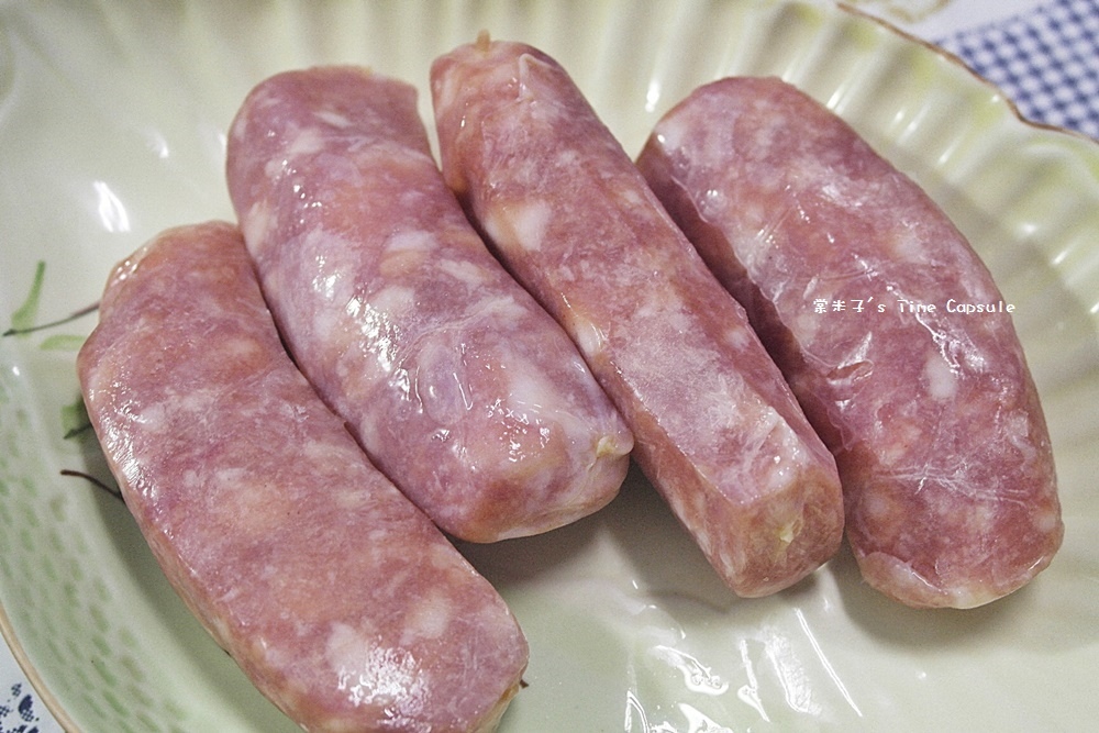 用了紹興酒、糖、白胡椒粉、玉桂粉、甘草粉灌成的香腸,
