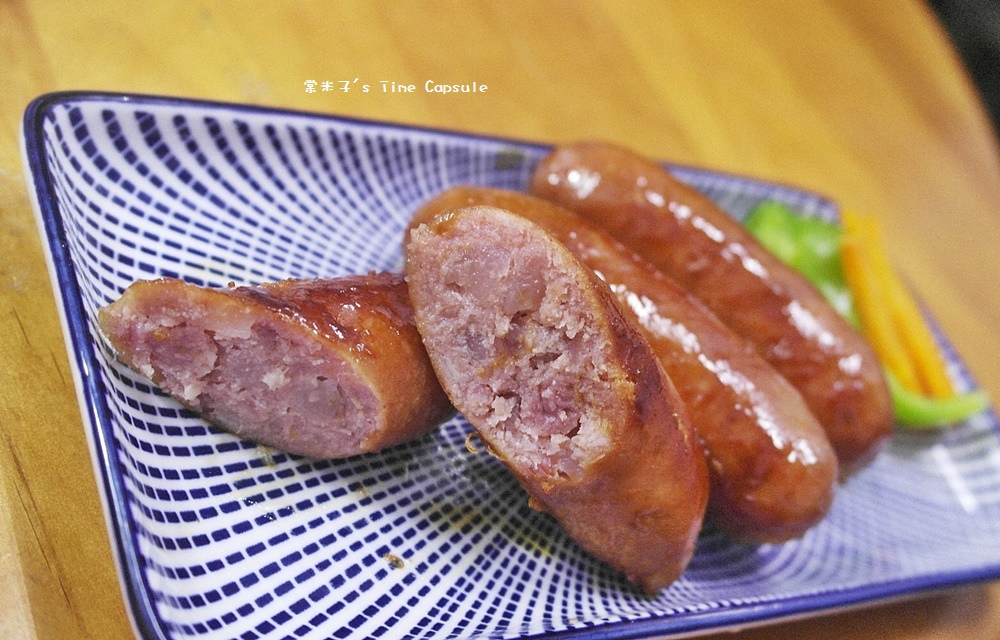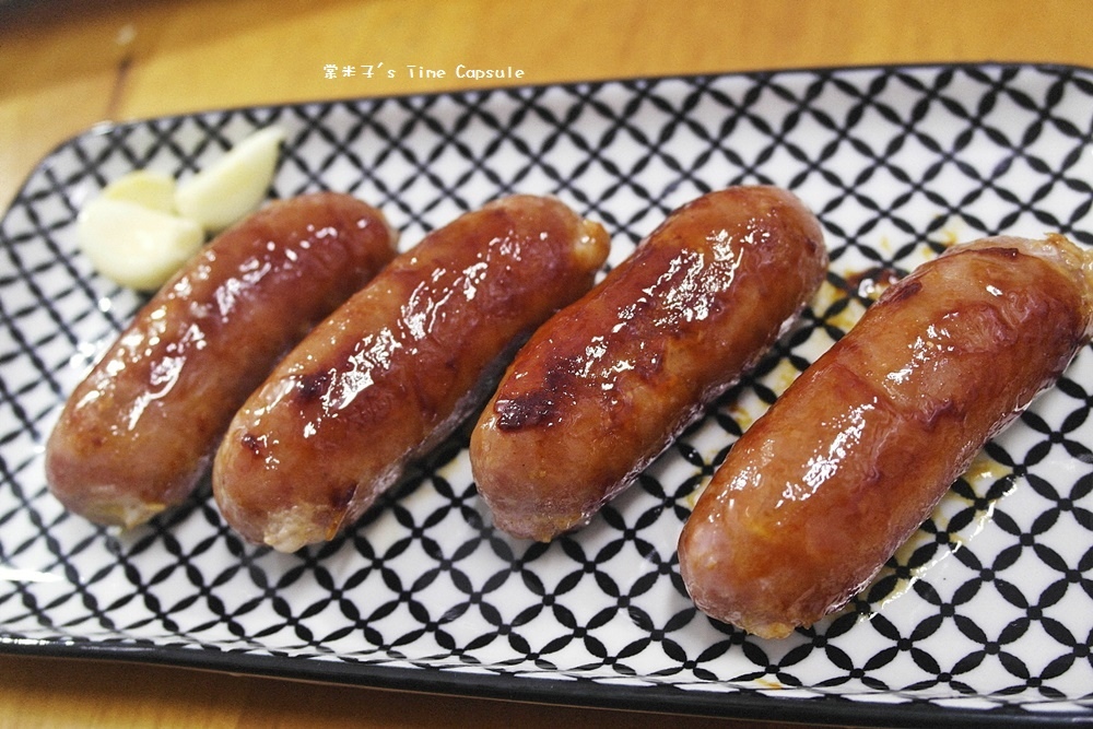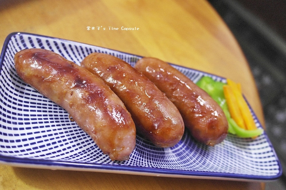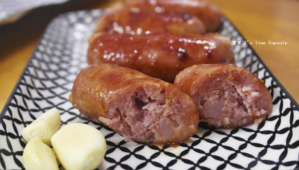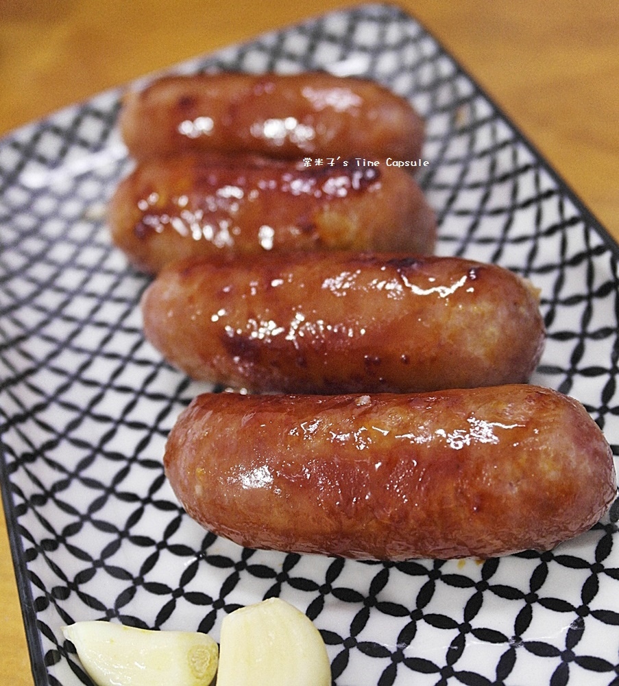 油油亮亮的原味香腸剛上桌就讓我好想直接咬上一口,