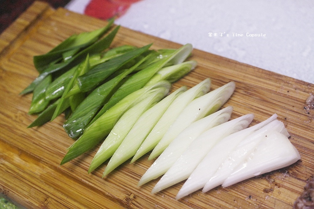 並備上蒜苗切片,