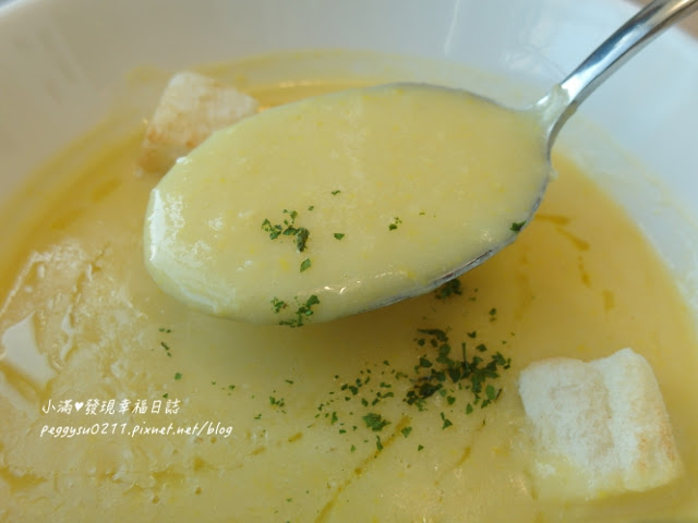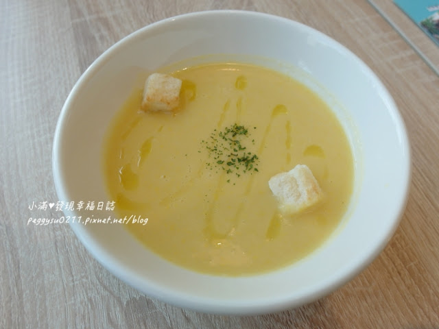 小滿從來沒喝過完全用玉米粒打的濃湯,充滿玉米碎的口感跟香甜