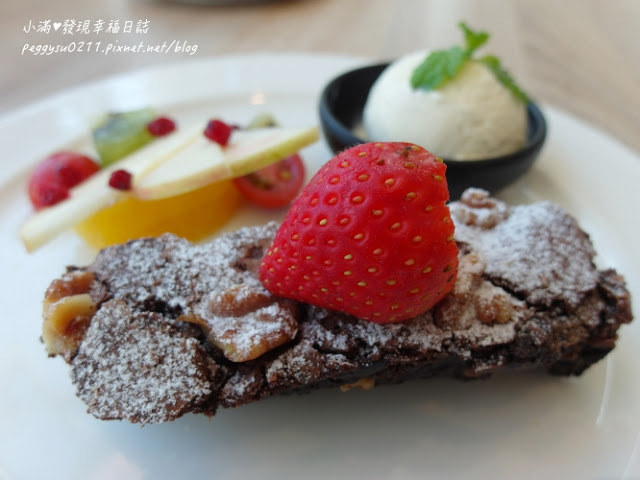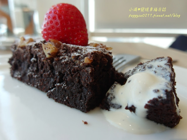 布朗尼熱呼呼的,一定要搭配香草冰淇淋,絕配