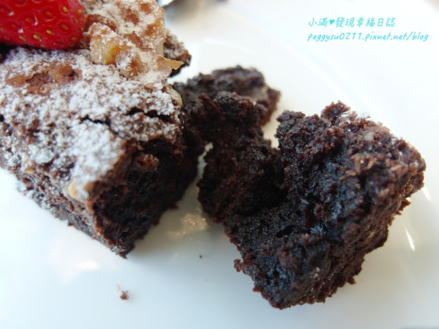 布朗尼蛋糕巧克力濃郁而且蛋糕體濕潤,堅果餡料豐富