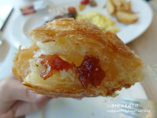 怕胖的人可以改點吐司,無論點什麼都會附奶油跟果醬,可頌加果醬好好吃喔~