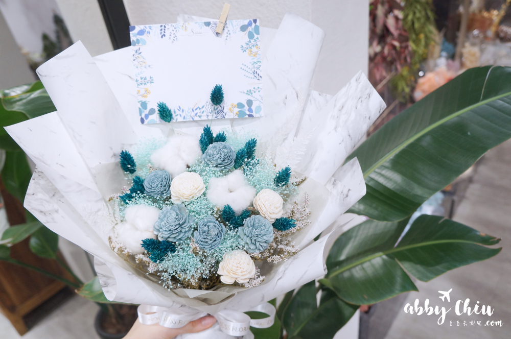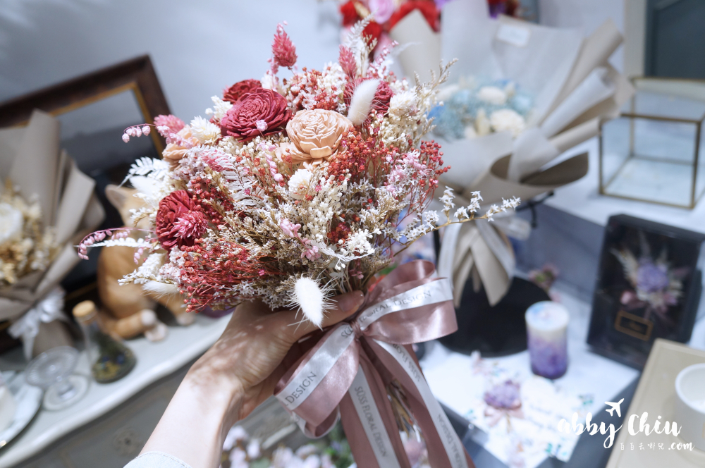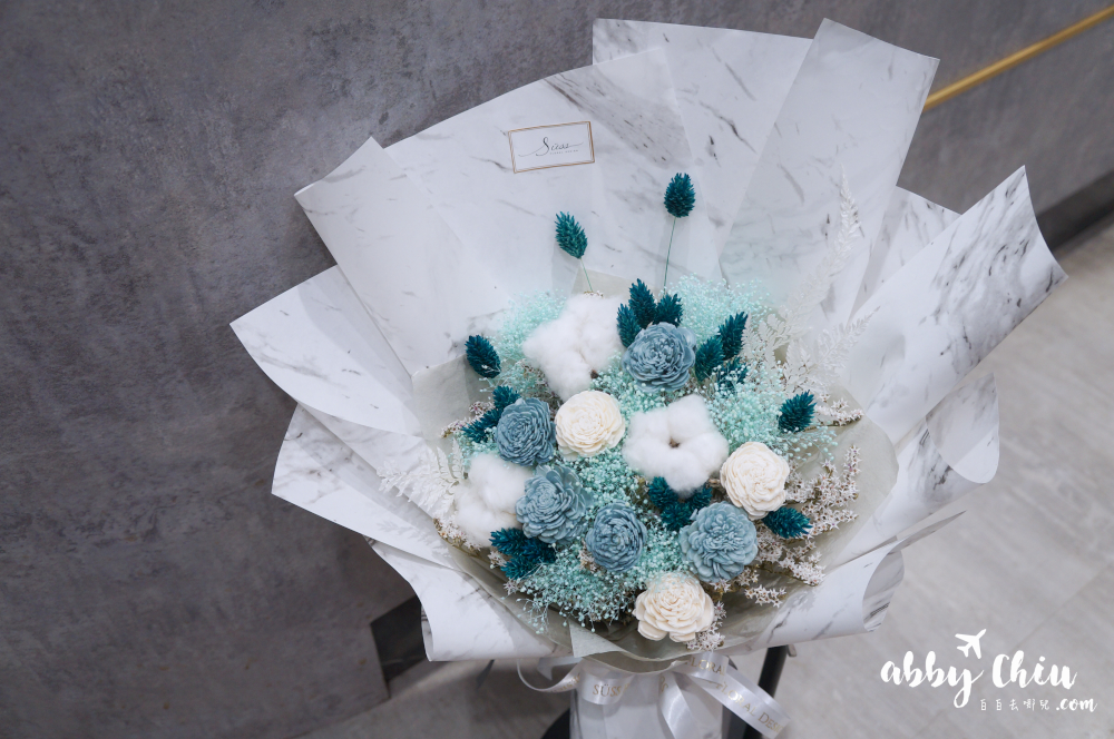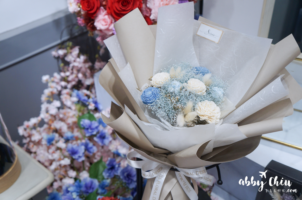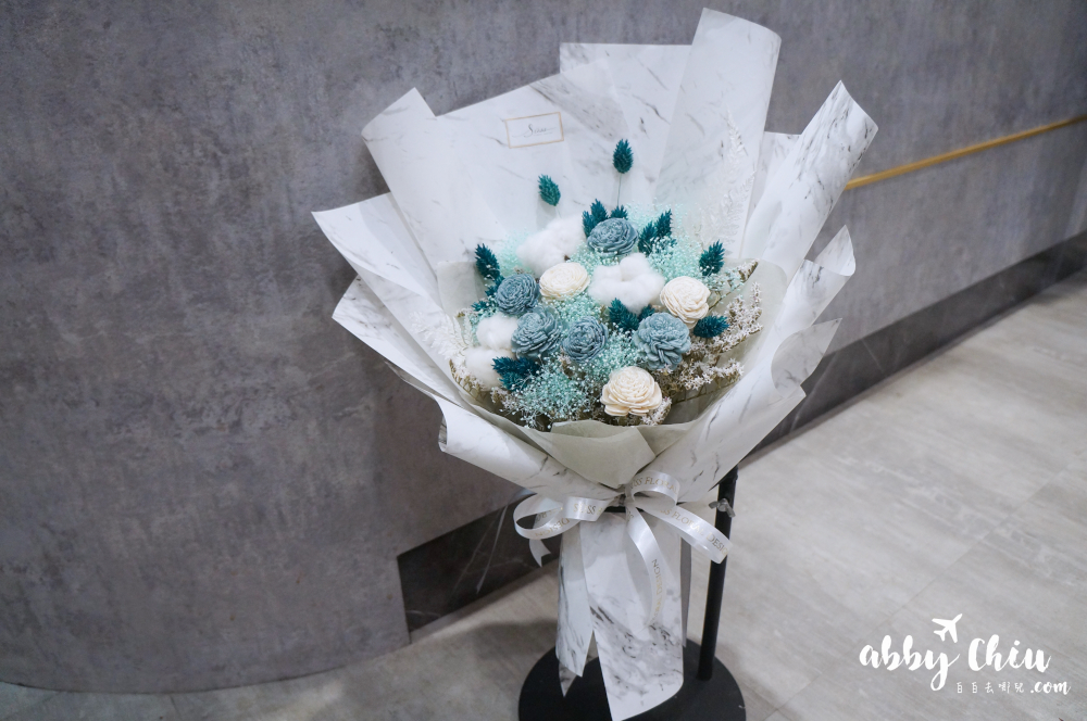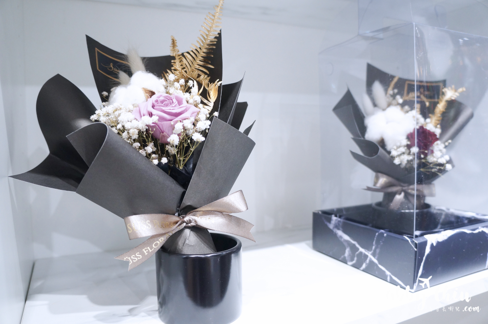 敘思花藝主打日本進口永生花跟鮮花為主,服務的項目很多元,不管是一般的鮮花、永生花花束、現場的插花、花藝課程、婚禮布置等等都有,現場看到的品項都可以做挑選,如果你是像我這樣想要自己挑選花束的話,大約30分鐘後可以取件,可以先來挑完以後到附近逛逛再回來,就有超級美的花束在等妳拉 !