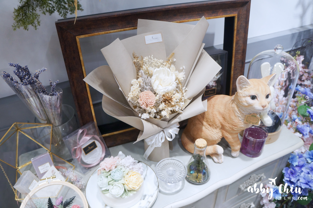 他們主打從日本帶回來的永生花,是用特別的藥水浸泡以及在加工染色,讓花朵保持在最完美的狀態,可以放得比鮮花持久,但又不會像乾燥花一樣顏色比較黯淡,對於喜歡花的女孩來說是一個很棒的選擇,而且永生花不會像是乾燥花一樣有一個味道,你也可以搭配她們特別進的用()雕刻的花朵,這個可以噴上你喜歡的香水,直接變成最美的擴香,讓你不只好看也有滿室的馨香。