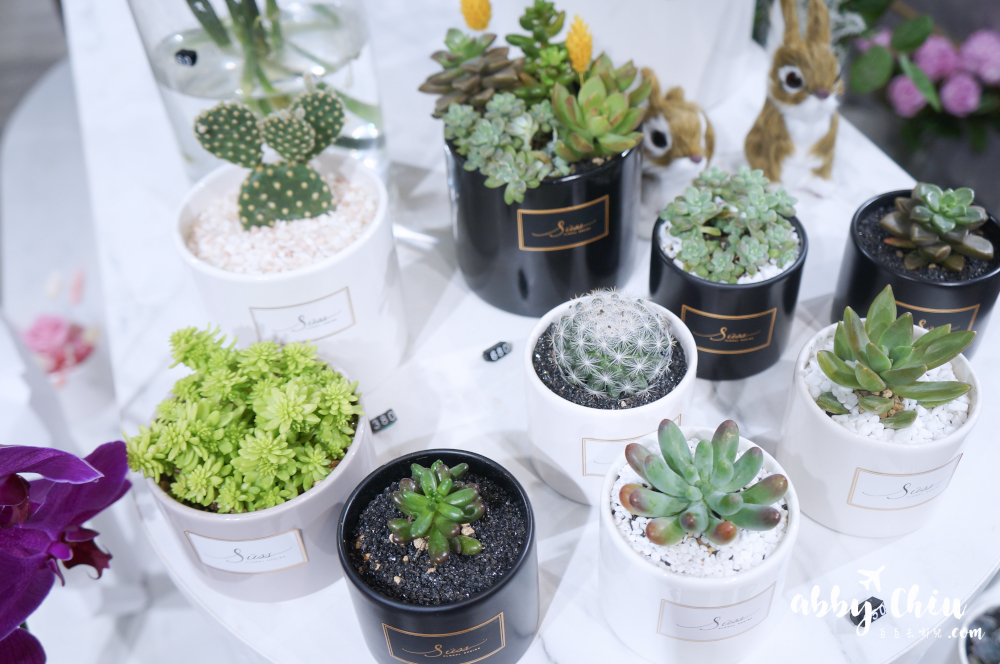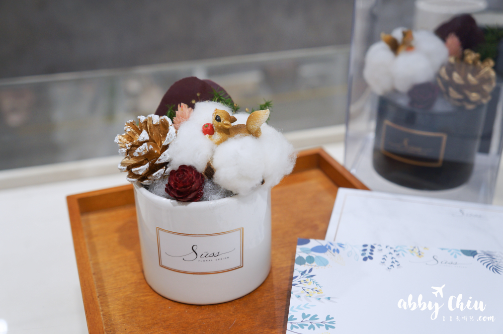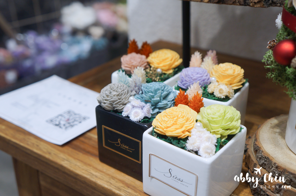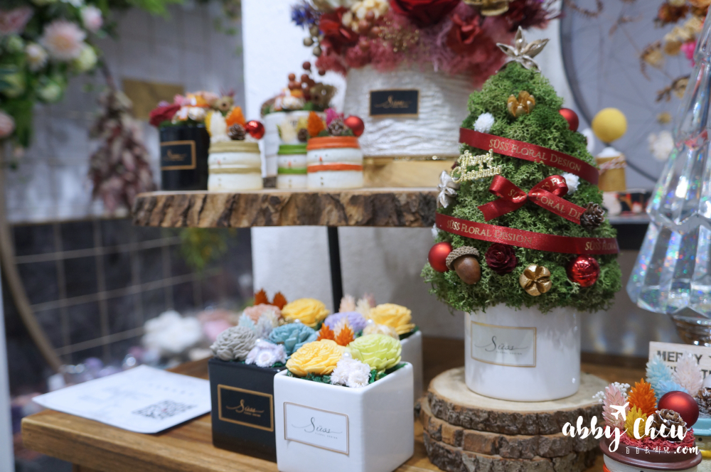 店裡的布置有非常多種品項,而且也不像大家以為的永生花的單價很高難以入手,現場就有300-500的小盆栽到更精緻的品項都有,很適合即將到來的聖誕節禮物挑選,他們家的盆栽非常有特色,形狀都很渾圓,看起來有種圓滿的感覺,除此之外還有依照季節或是節慶的特別款,每一種看了都好想通通帶回家 !