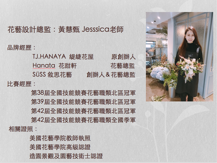 今天幫我設計花束的是Jessica老師,設計的花束跟人一樣又美又仙,手也超巧,推薦給你們