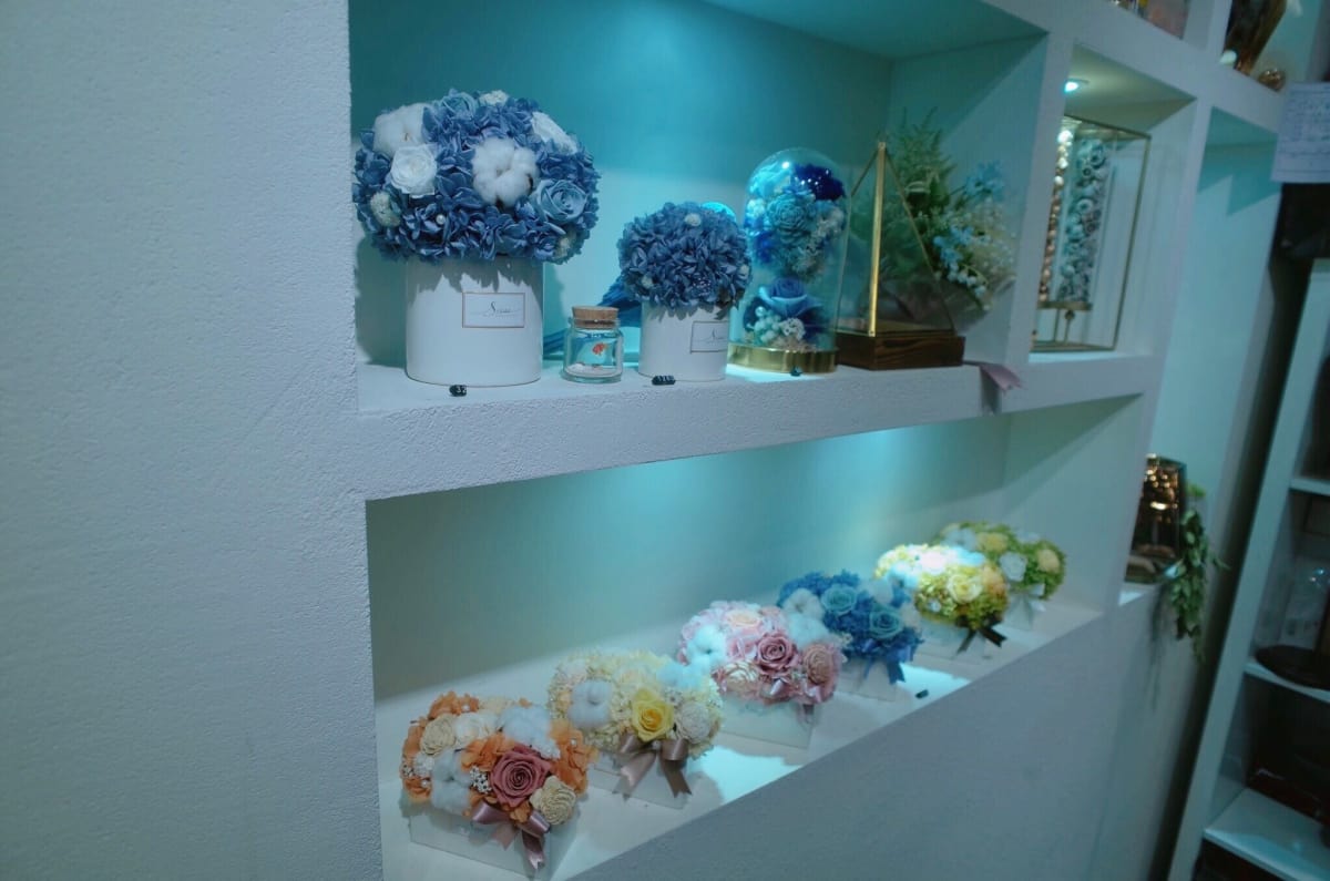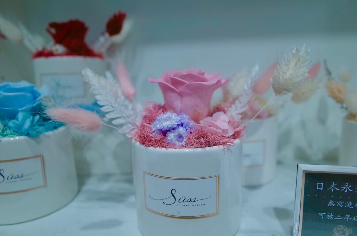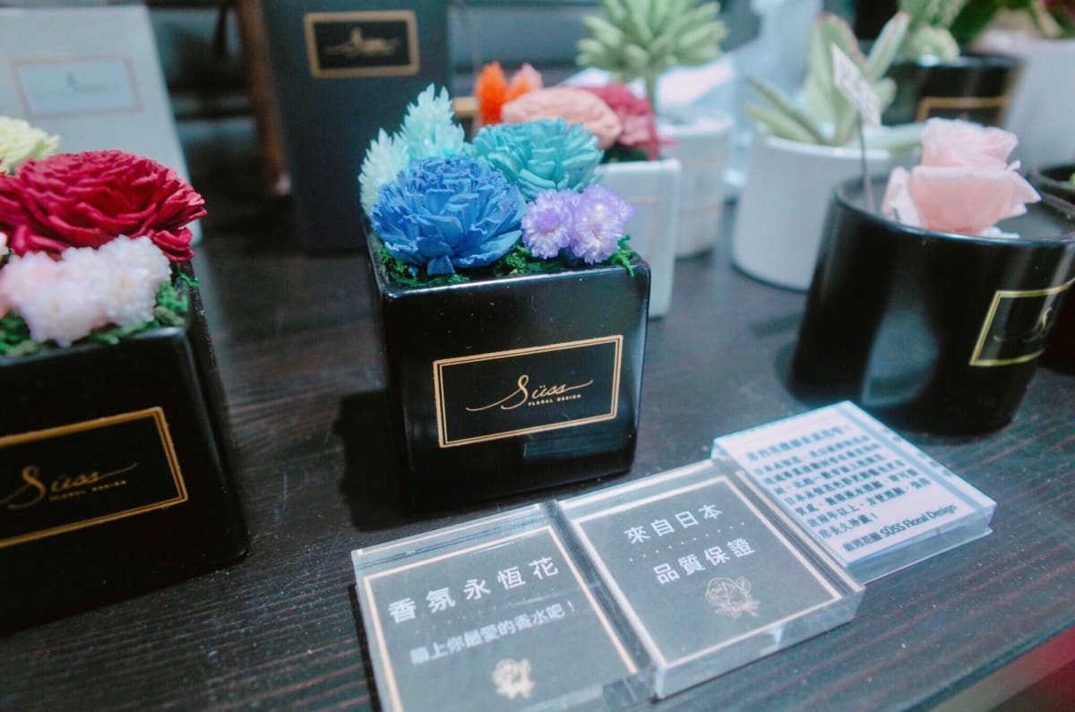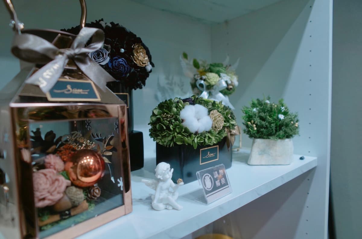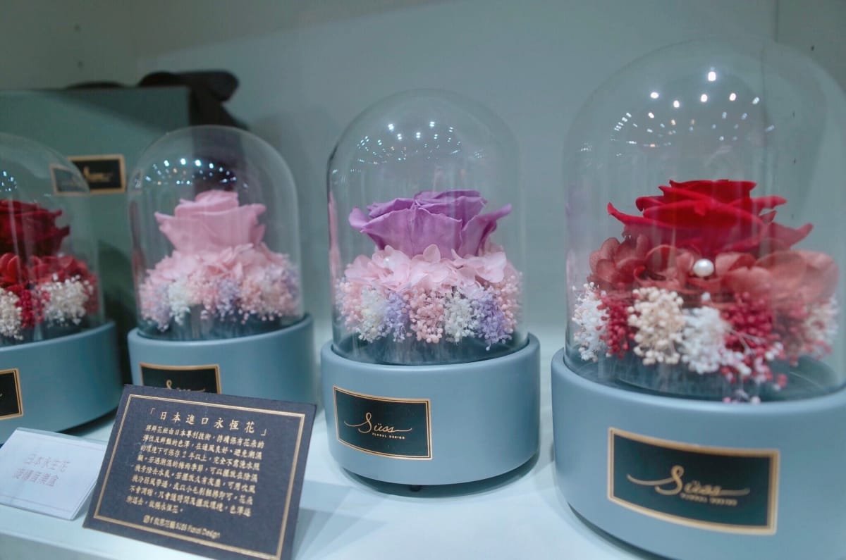 敘思花藝店內的永生花都是從日本引進的,就連較特別的擺飾品也是從日本進口,所有的花品都是店家精心挑選販售