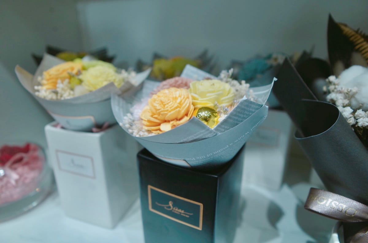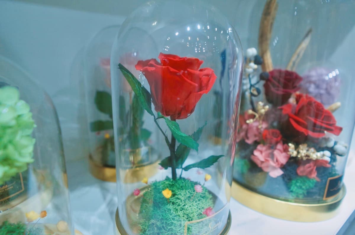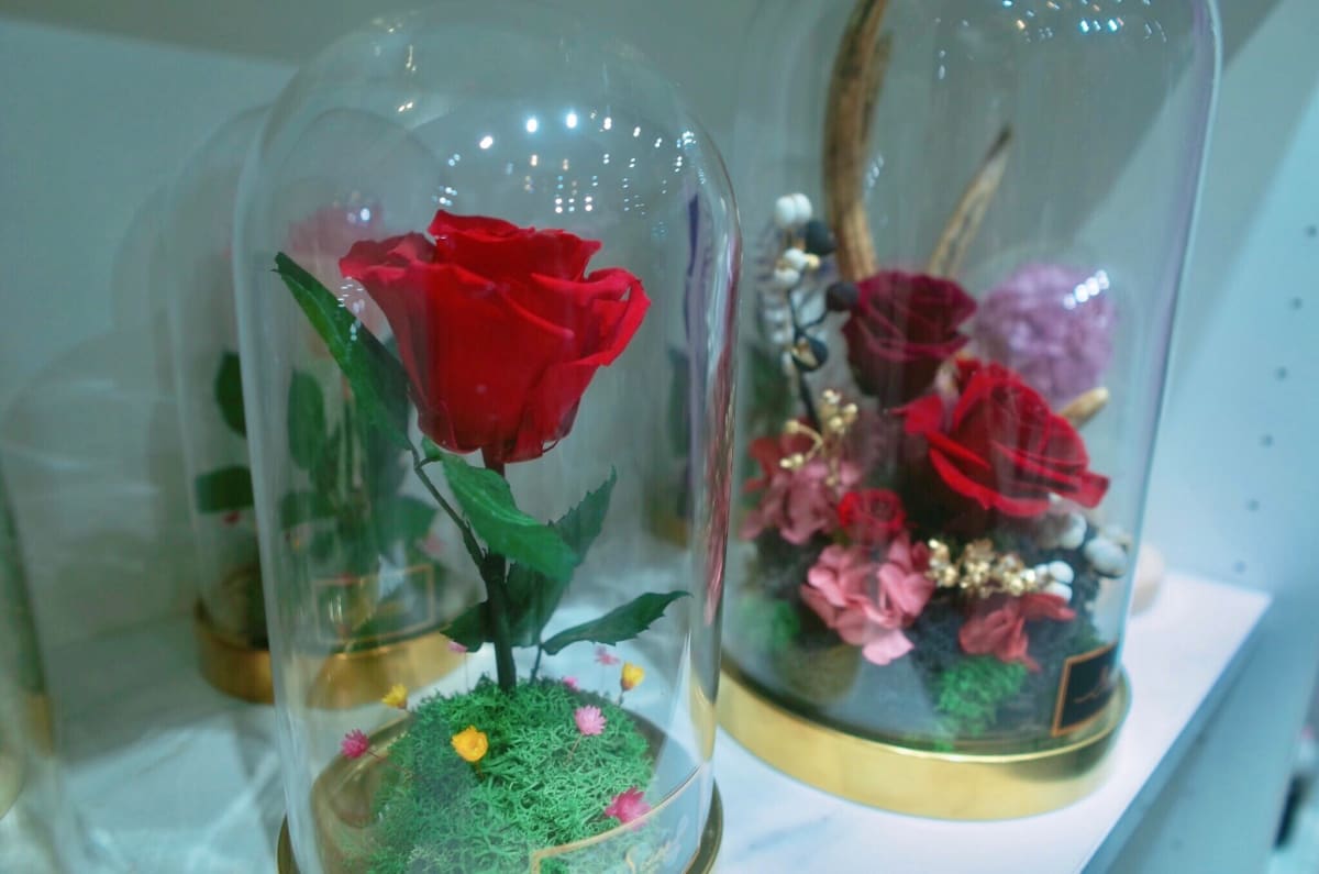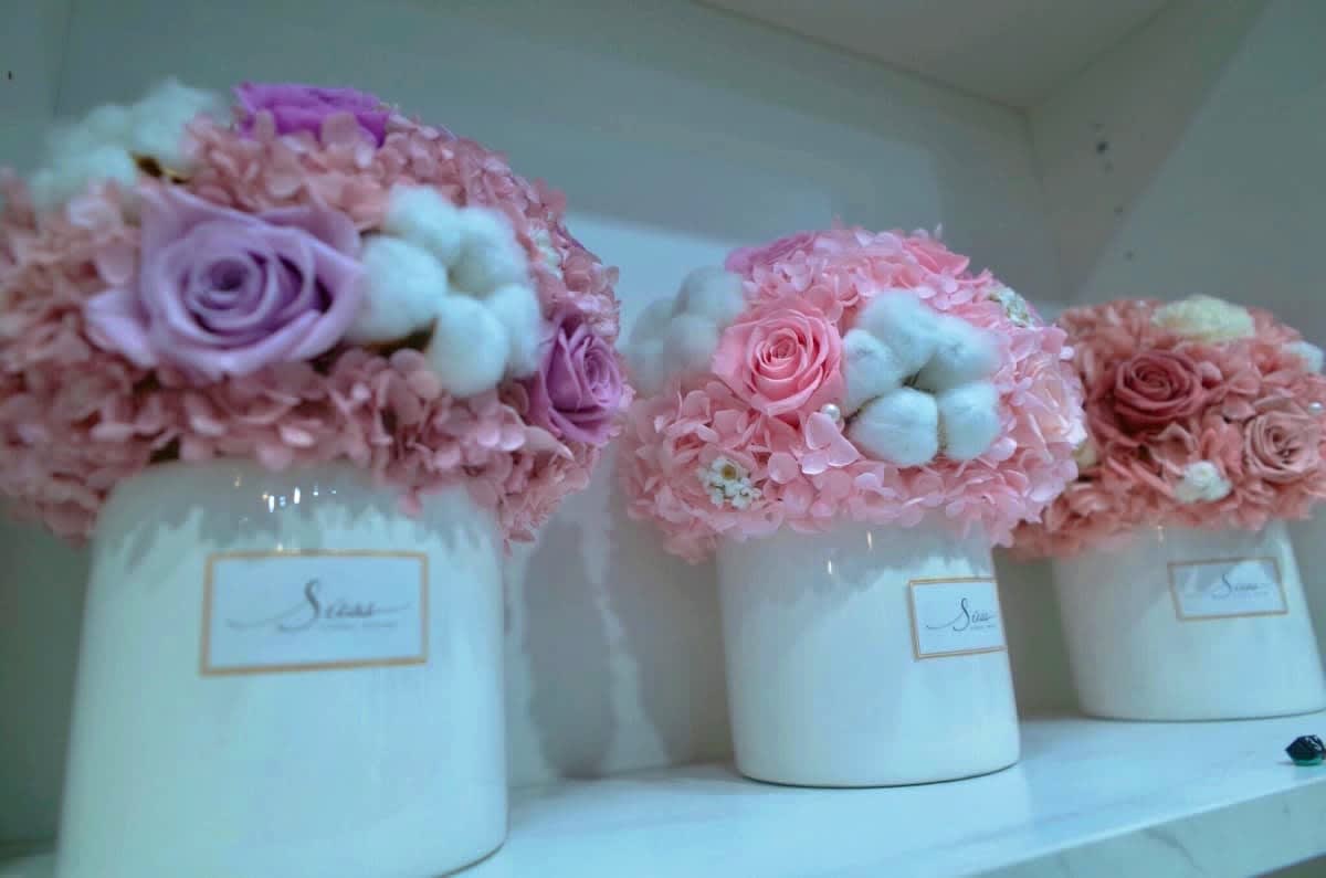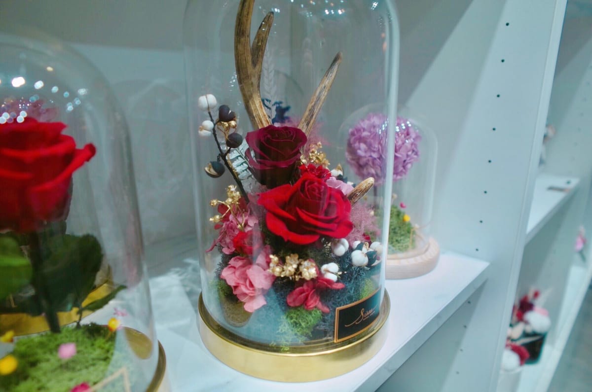 敘思花藝店內的永生花都是從日本引進的,就連較特別的擺飾品也是從日本進口,所有的花品都是店家精心挑選販售