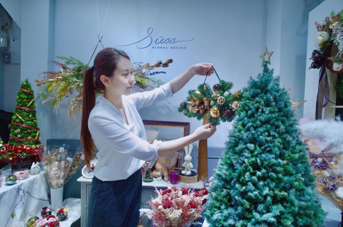 闆娘說這樣大的聖誕樹,還沒裝飾,就需要花三天的時間完成,都是一小株一小株永生花綑上鐵絲慢慢完成的,可見這多費工夫啊!