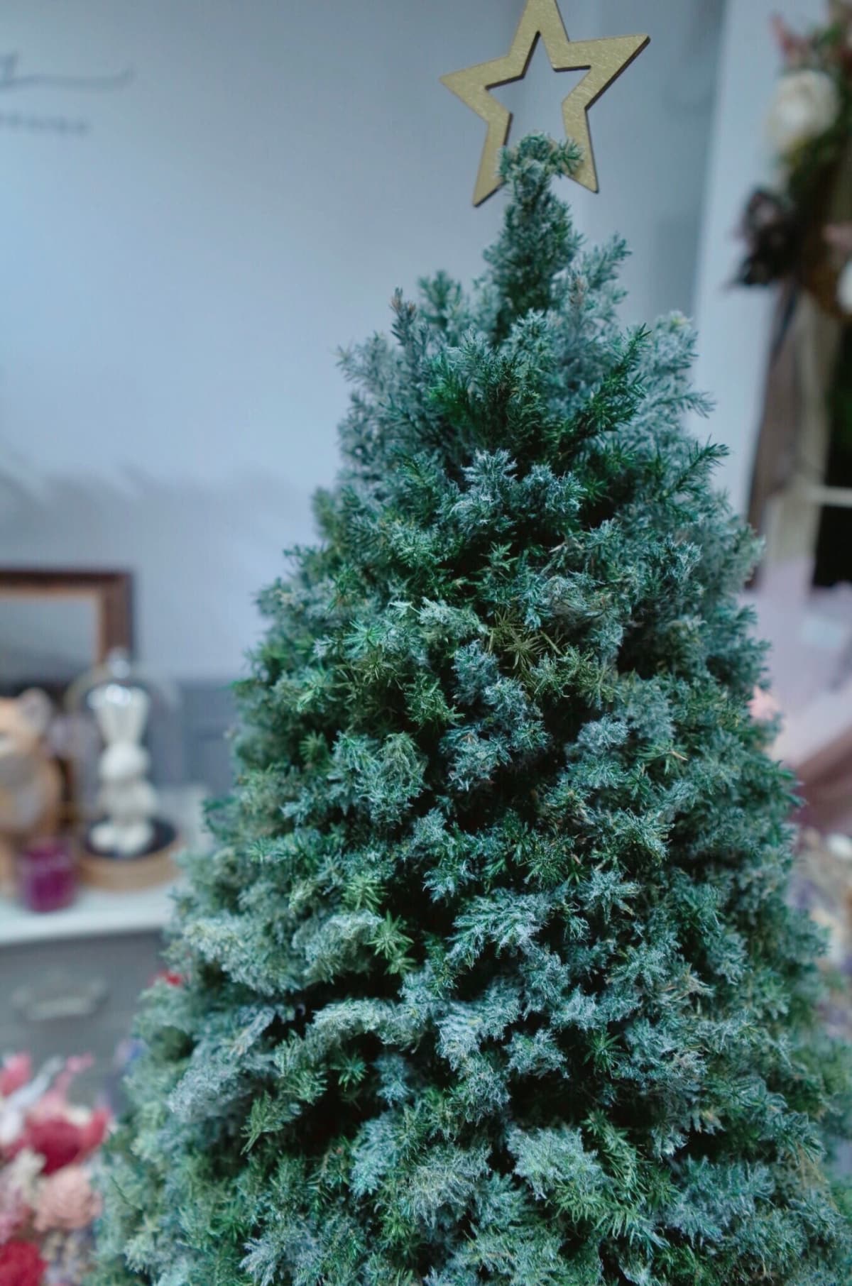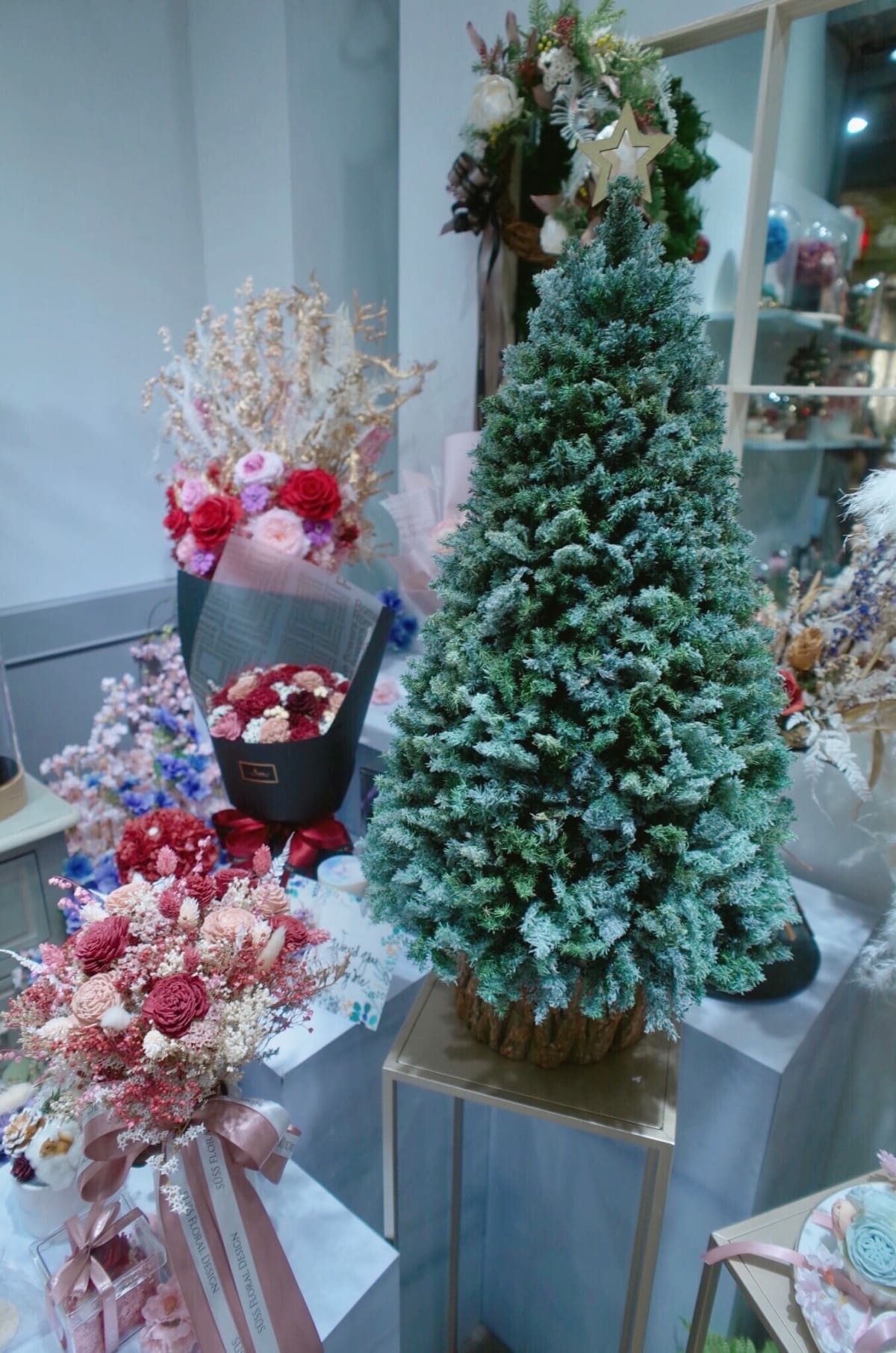 是不是覺得這棵聖誕樹是仿真的?這棵聖誕樹也是永生花做成的唷!