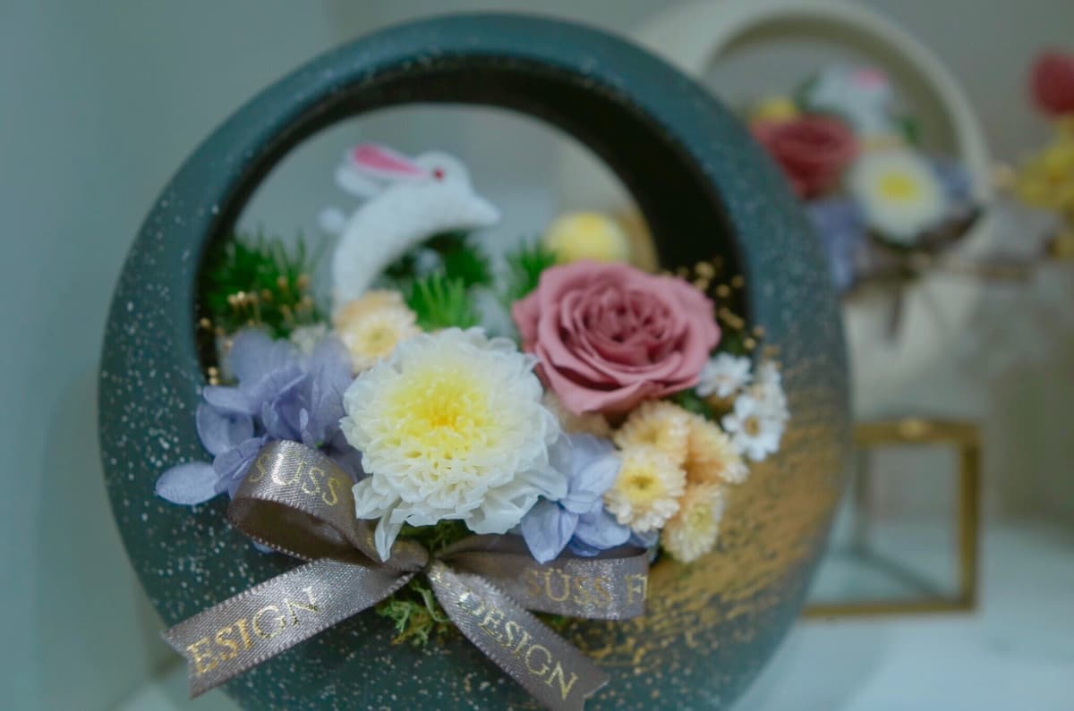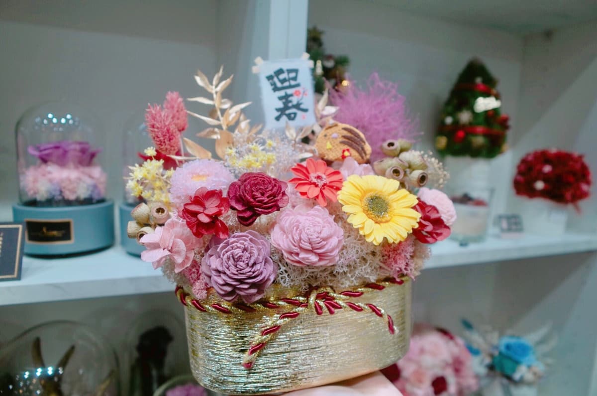 像上面那些有容器的作品都屬於盆花類型商品,如果想要這款的話,就必須兩天前預訂,當然現成品例外,不過只要你的花想依照自己的想法客製化做盆花,就必須先預訂唷!