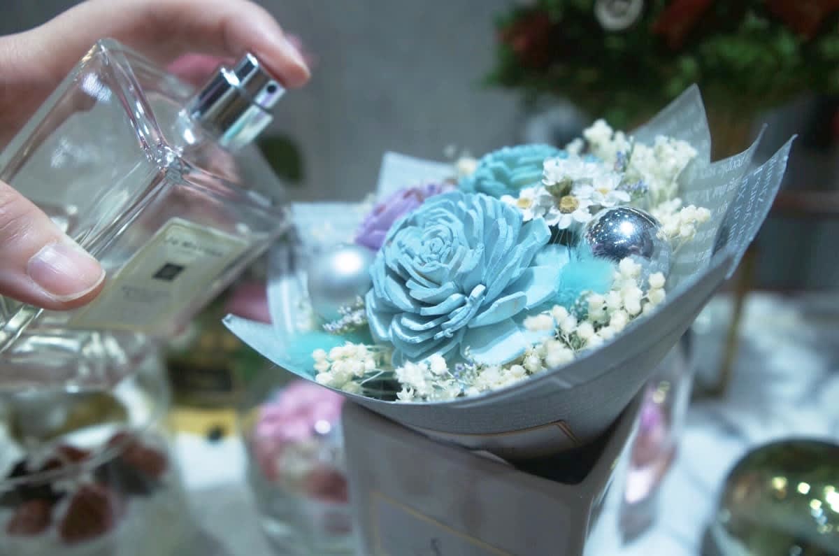 當你購買時,店家會先提供 Jo malone 的香水替你的香氛花噴上,後期若香味擴散掉了,就可以噴上你自己喜歡的香水味囉
