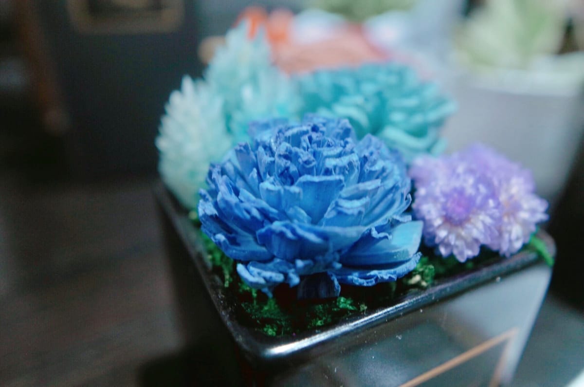 其實這種索拉木雕刻出來的花稱作「索拉玫瑰」,他不只是擺飾好看,他還可以當作擴香花,只要在上面噴上香水就可以維持香氣,當然香氣還是會擴散掉的,所以可以定期噴香水上去,還可以變換不同的香味哦!