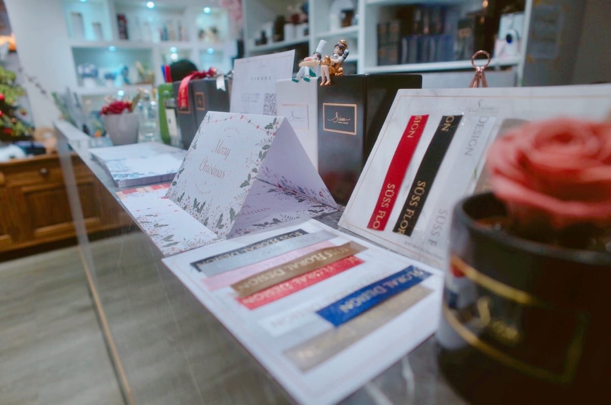 包裝紙顏色、花色、緞帶、卡片都能自己挑選搭配