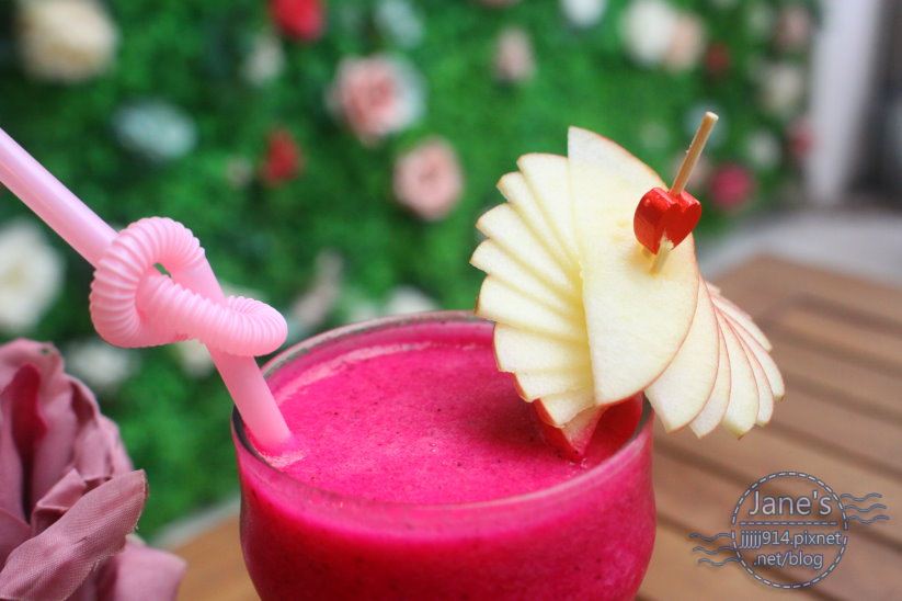 火龍果、蘋果跟香橙打出來的果汁喝起來新鮮香甜,清涼解渴~