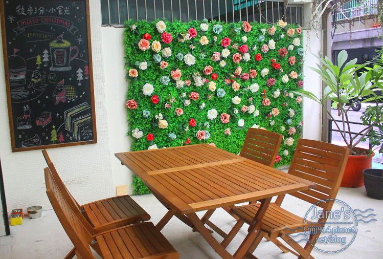 又有那一片花牆可以拍,這樣的天氣又不會太熱,好啦!就選外面了…