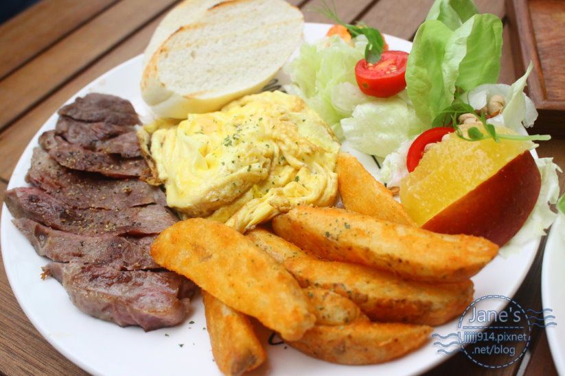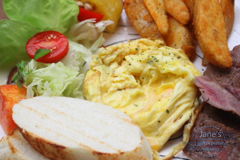 炒蛋加上起司在裡頭,味道鮮嫩可口,整道早午餐的份量真的滿多的~
