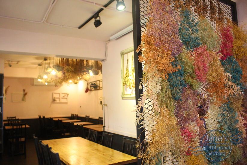 一進到餐廳裡頭,就可以看到許多顏色繽紛的乾燥花,
