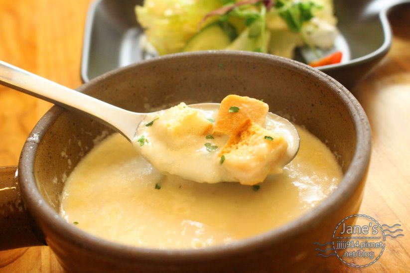 (濃湯是奶油培根濃湯,香濃好喝,還有附上香脆麵包丁,