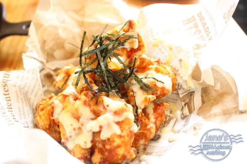 再灑上香脆海苔絲,蜂蜜芥末的醬汁也沒有影響炸雞腿的香脆,