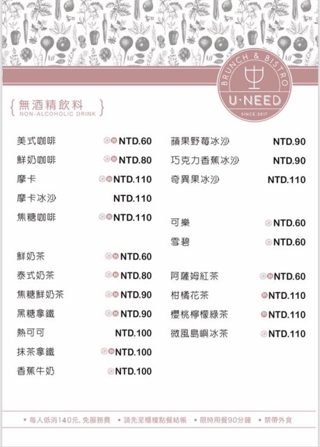 每人低消140元,但用餐不用另收服務費,餐點價格合理且實惠~
