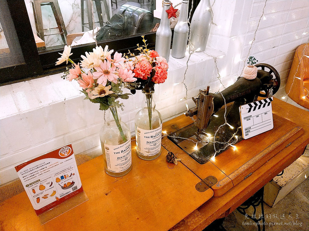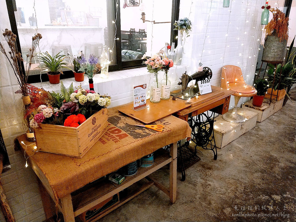 還沒有走進 U NEED 室內用餐區,外面就有一個小小的拍照區走廊,佈滿了各式經典雅緻的裝置與道具。像是骨董老裁縫車、鐵製鳥籠、小舞台與高腳椅、各種植物與灑水器,還有提供拍照用的花束讓女孩們使用。女孩們可以在這裡手持花束,搭配各種浪漫氛圍的場景,拍下一張張唯美可愛的照片。