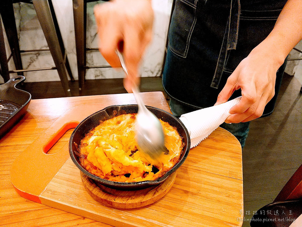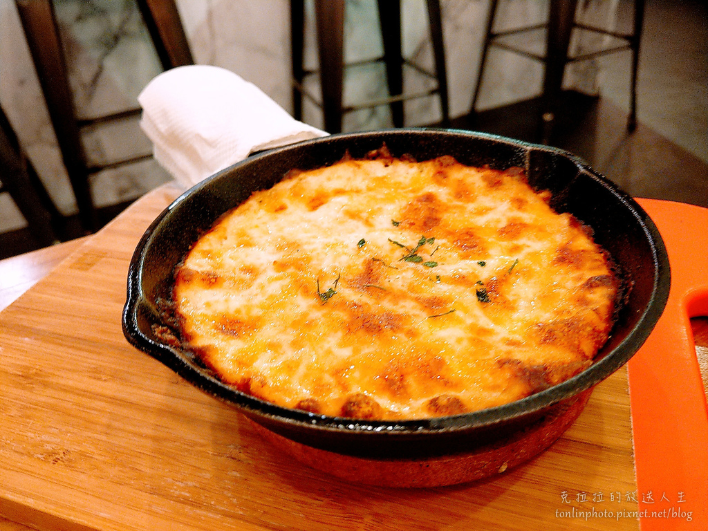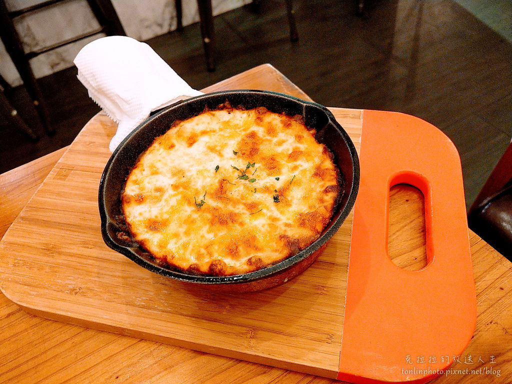 奶油起司地瓜這一道深受某位熱愛甜點的老友喜愛,熱騰騰烤盤一上桌,服務人員就詢問是否要協助拌攪。趁著剛烤好的時候拌勻,讓融化的起司和地瓜裹在一起,吃起來香甜軟Q,很適合當甜點喔!
