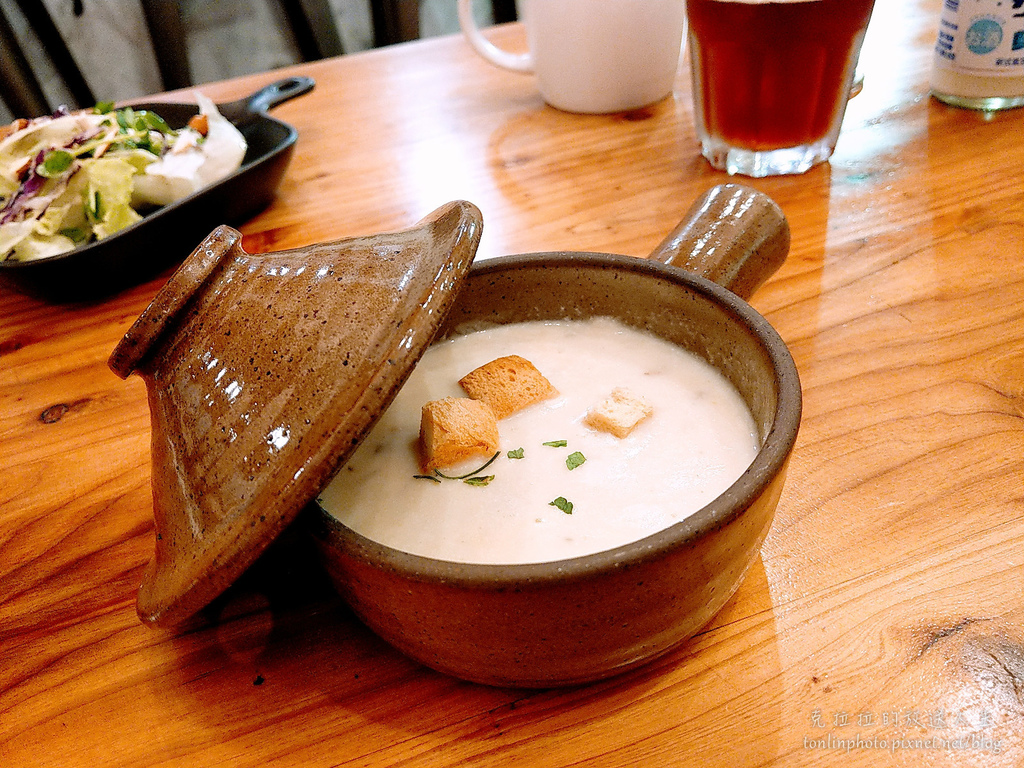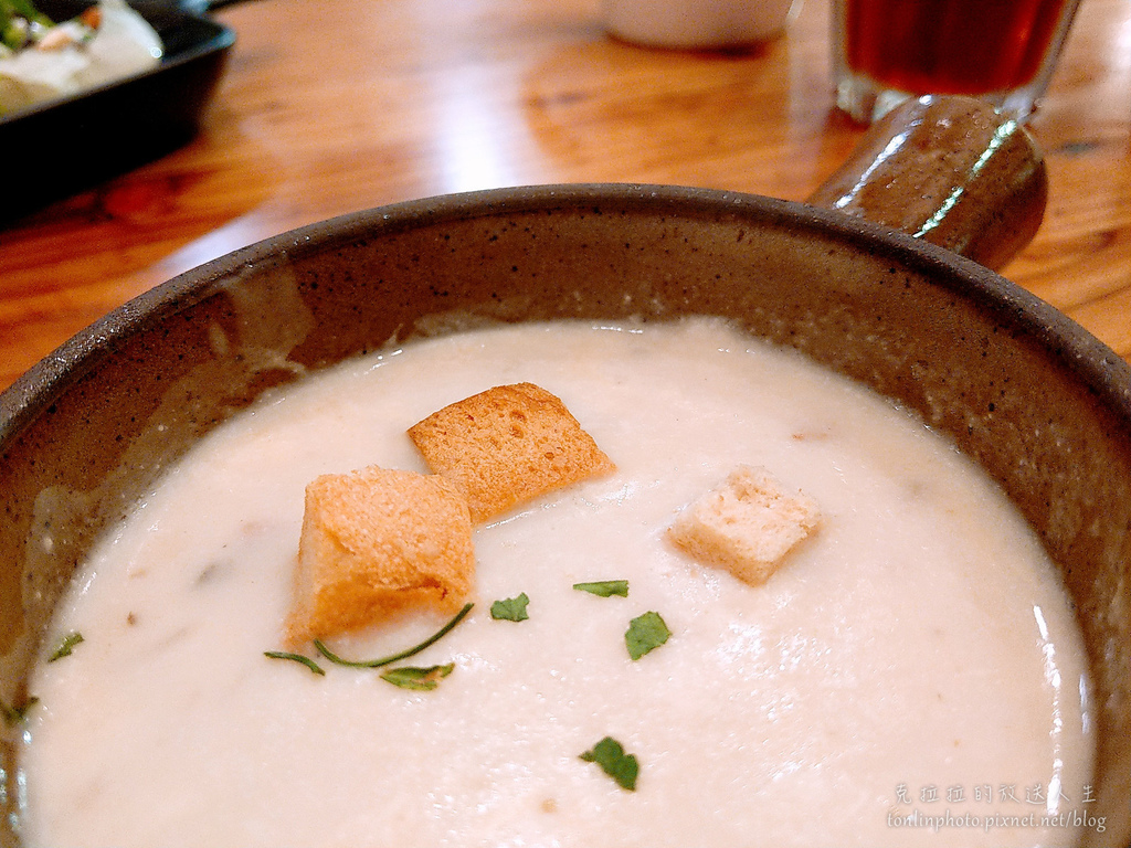 很快地,濃湯就上桌啦!U NEED 的濃湯很真材實料耶!用可愛小陶鍋盛裝的濃湯,似乎是加了馬鈴薯,超濃超好喝,整個很有飽足感啊!