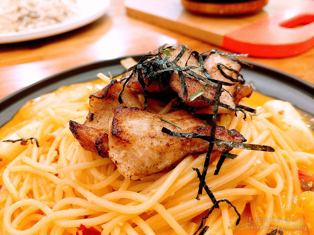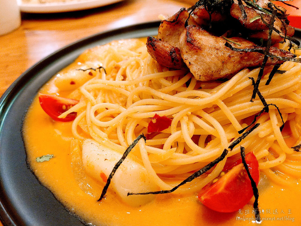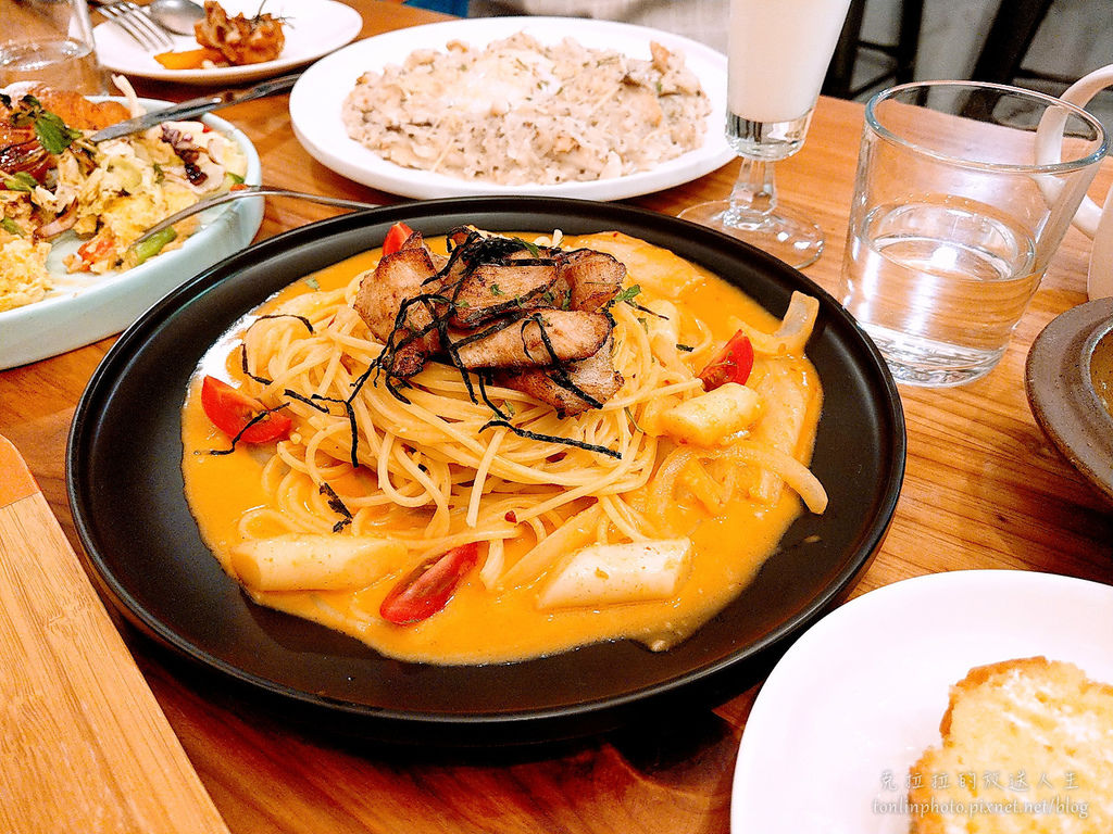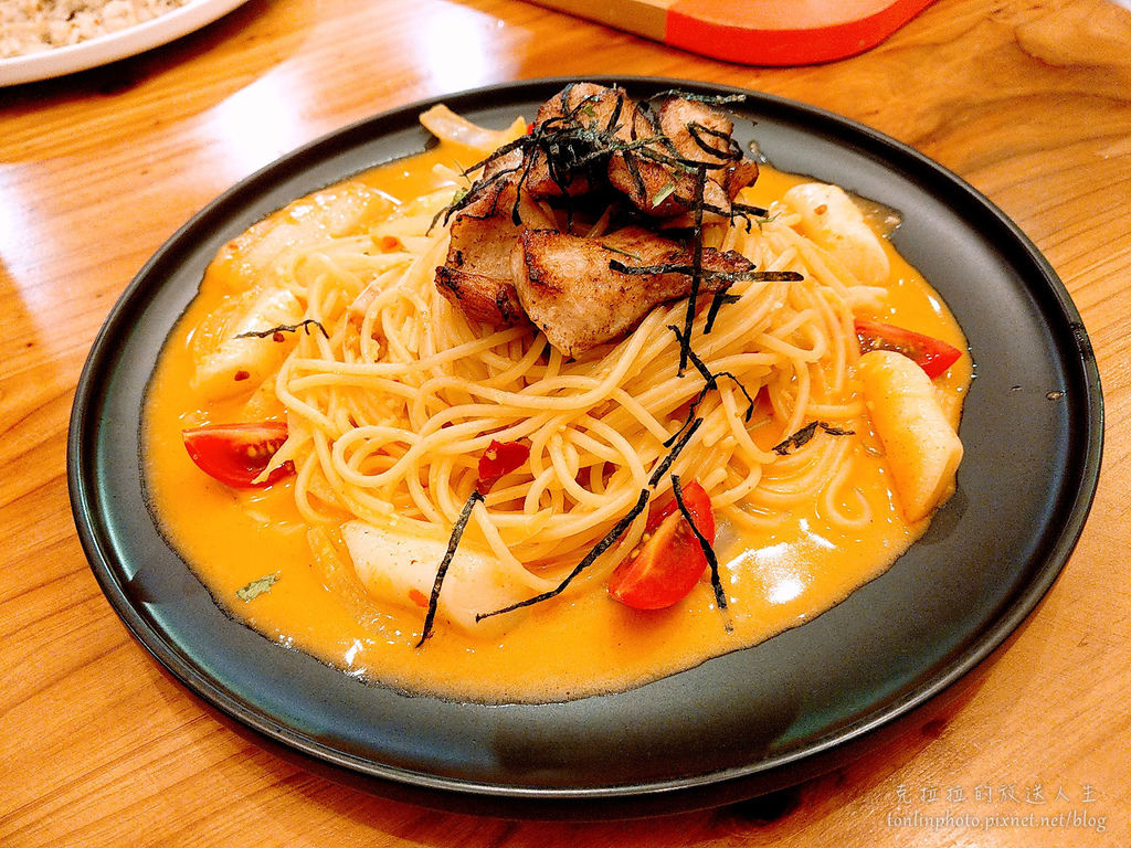 松阪豬泡菜麵是我心目中的第一名!(撒花)這一道義大利麵不只有創意,把韓國泡菜與年糕結合進義大利麵料理中,更重要的是好吃啊啊啊啊!松阪豬脆口有彈性(而且肉給得很多,我一直不停叫朋友多吃一點),年糕軟Q、泡菜香甜中帶些微辣,加上彈牙的義大利麵,我給88分!(怕給87分被店家打,哈哈哈~)