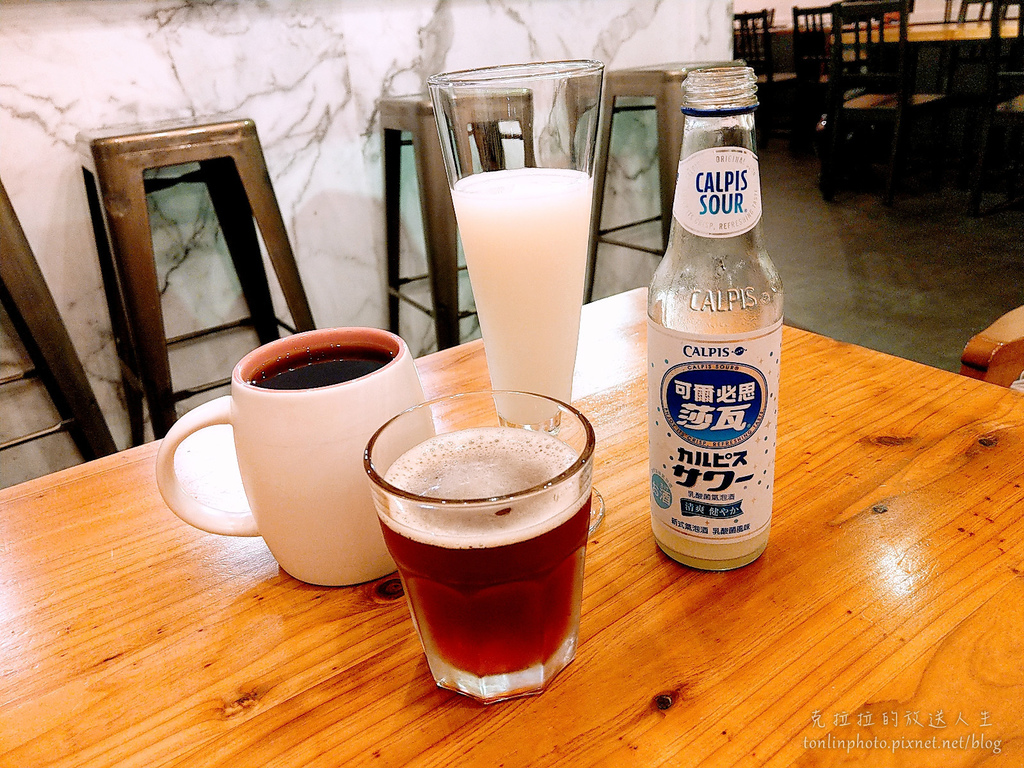 飲品們也一起上桌了!最愛喝冰飲的我感冒,其他兩位都很養生不太喝冰的,所以我們點了熱紅茶、冰紅茶(去冰),還有一瓶沙瓦。話說 U NEED 營業時間到晚上10點,除了白天可以來吃早午餐,晚上還可以跟姊妹淘來小酌喔!【飲酒過量,有礙健康】