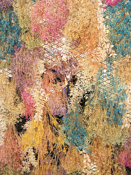 拉開店門後,映入眼簾的是流行的乾燥花牆