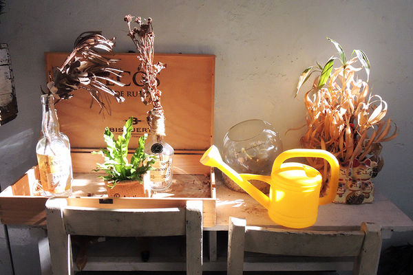 有近年相當流行的乾燥花牆、室外一隅的經心佈置