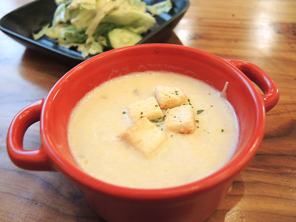 而且是濃郁的濃湯非常非常好喝,麵包丁也是扮演著畫龍點睛的角色,我們都超愛這道湯品!